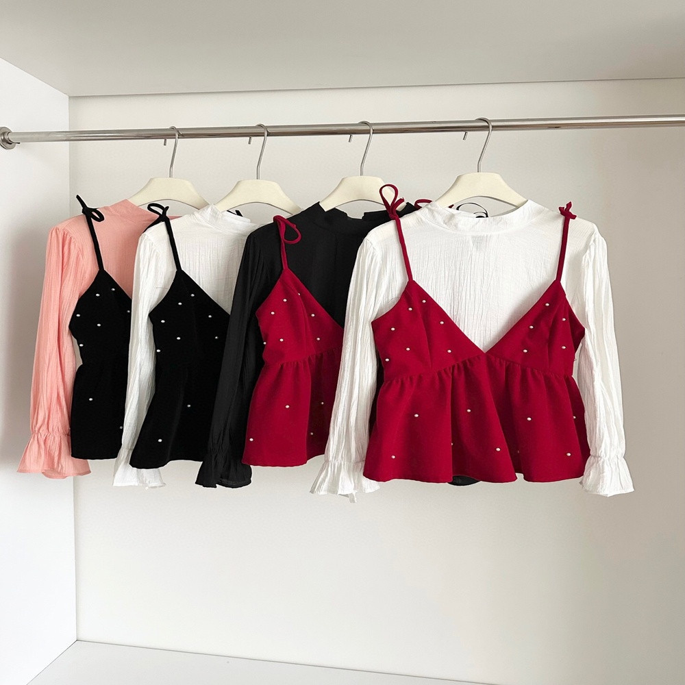 • 제품명: 진주 포인트 끈나시 셔츠 2종 세트