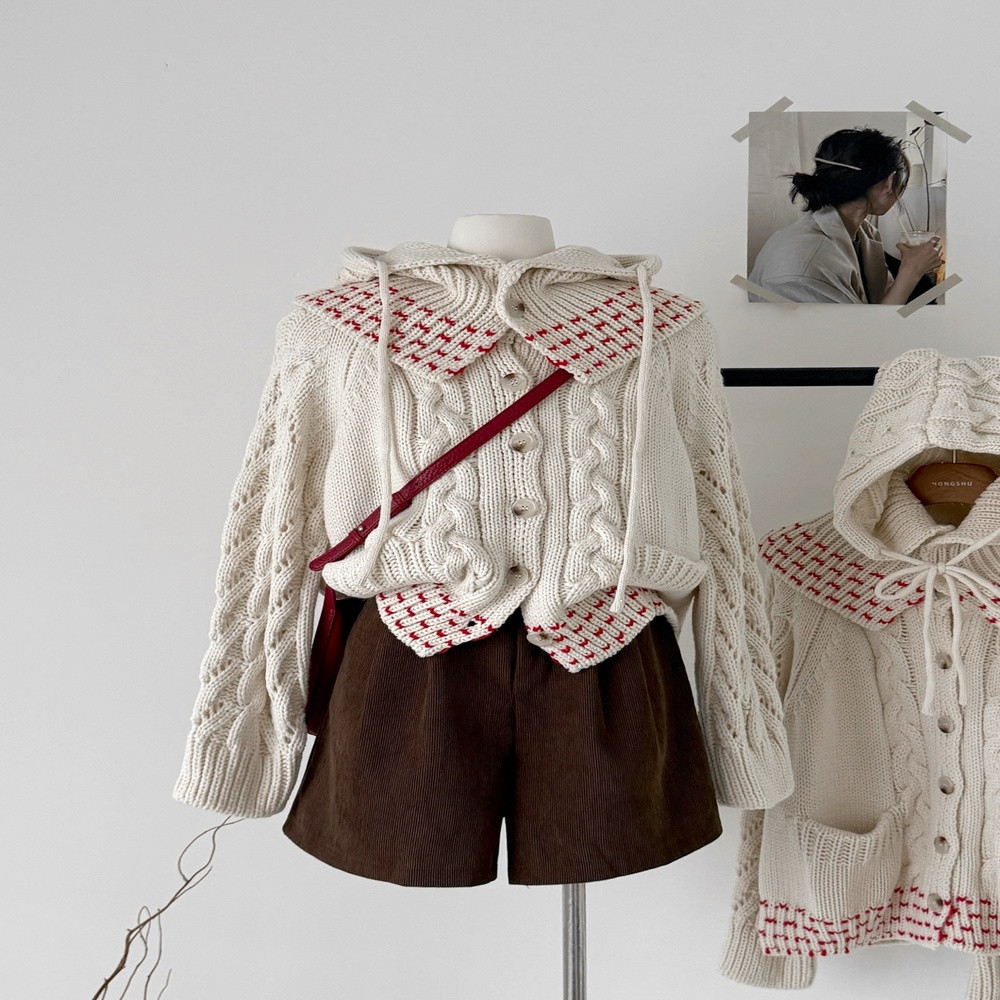 • 제품명: 분위기감 배색 케이블 니트 가디건 탈부착 후드 세트
