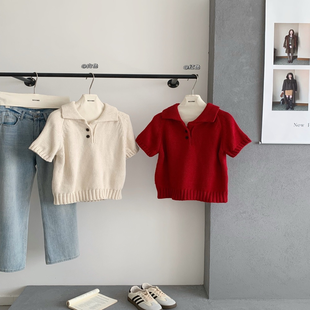 • 제품명: 카라 버튼 포인트 니트 반팔 탑