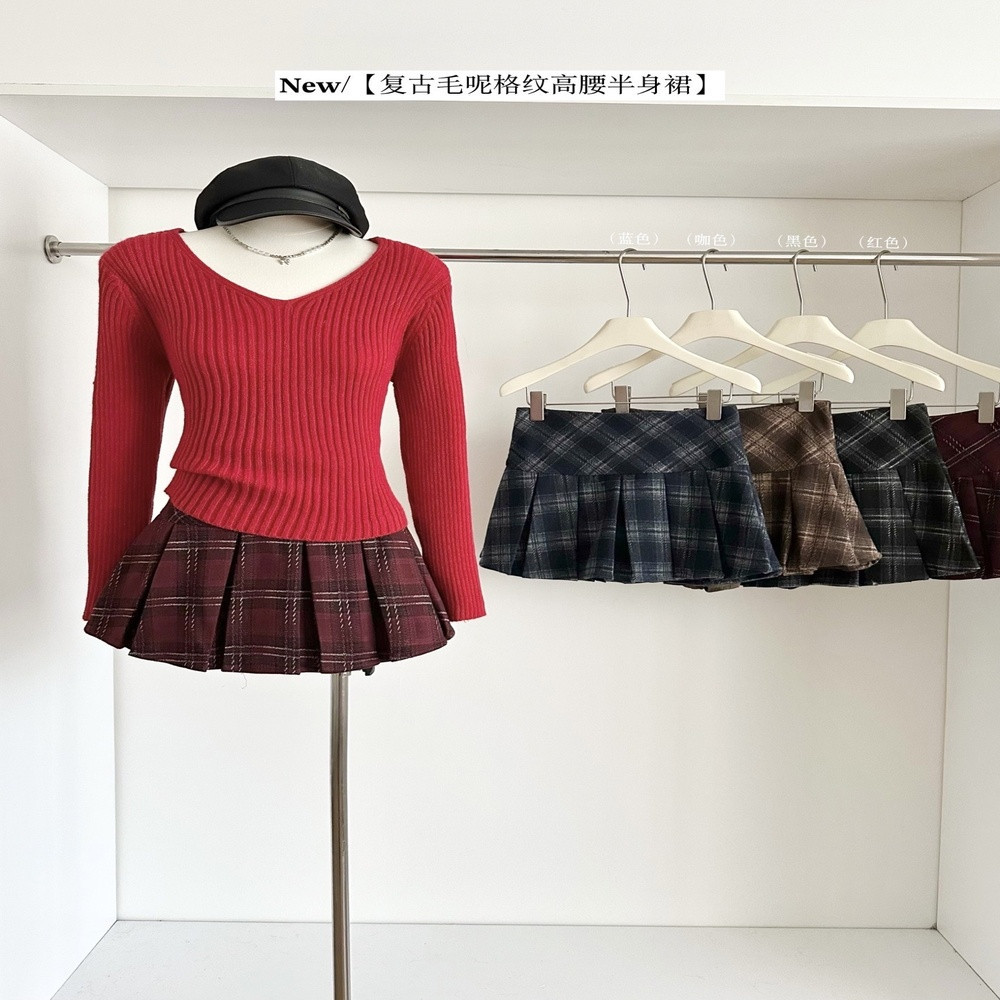 • 제품명: 복고 울 터치 체크 하이웨이스트 플리츠 미니 스커트