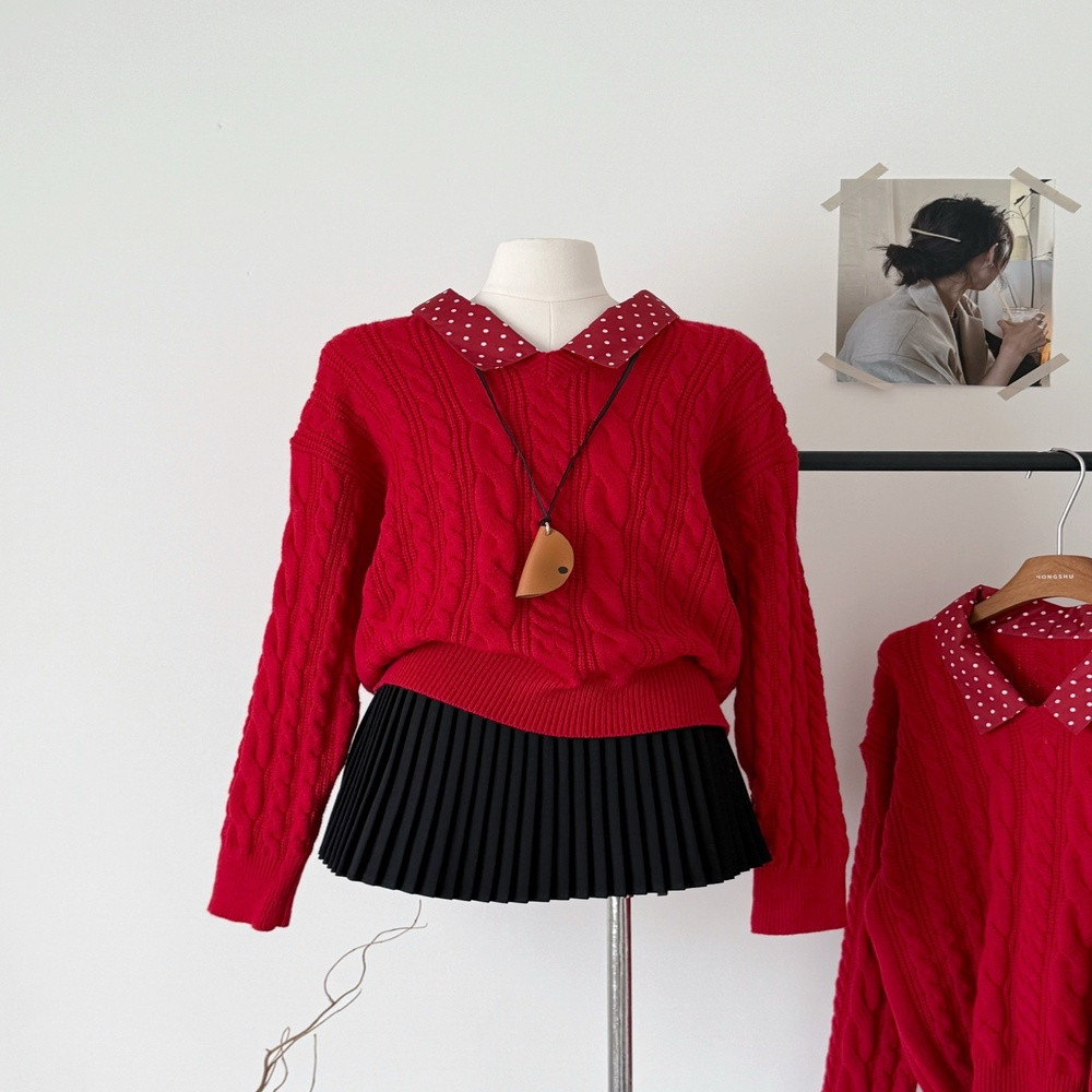 • 제품명: 폴로카라 도트 레이어드 케이블 니트