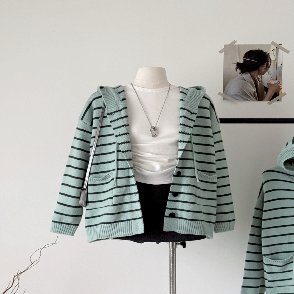 • 제품명: 스트라이프 후드 버튼 니트 가디건
