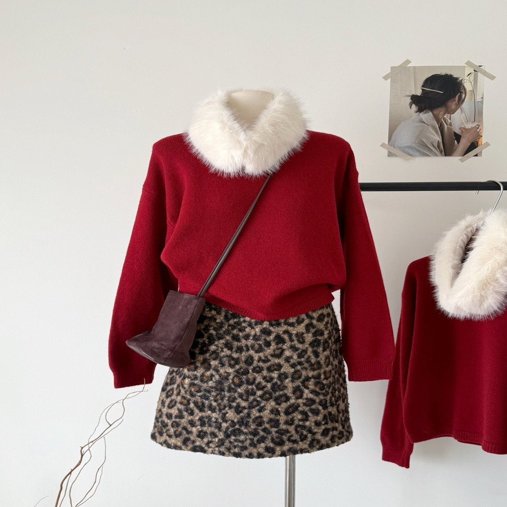 • 제품명: 레드 니트와 레오파드 미니 스커트 투피스