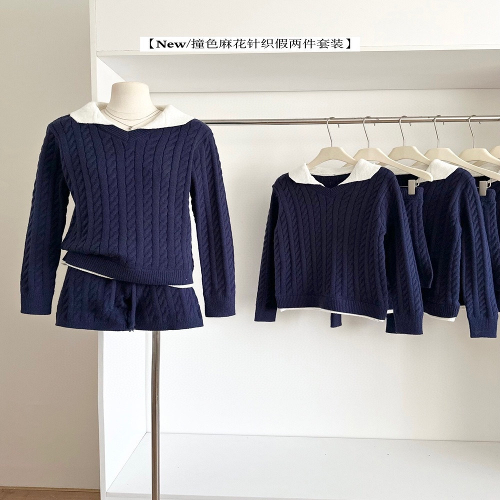 • 제품명: 배색 케이블 니트 레이어드 투피스 세트