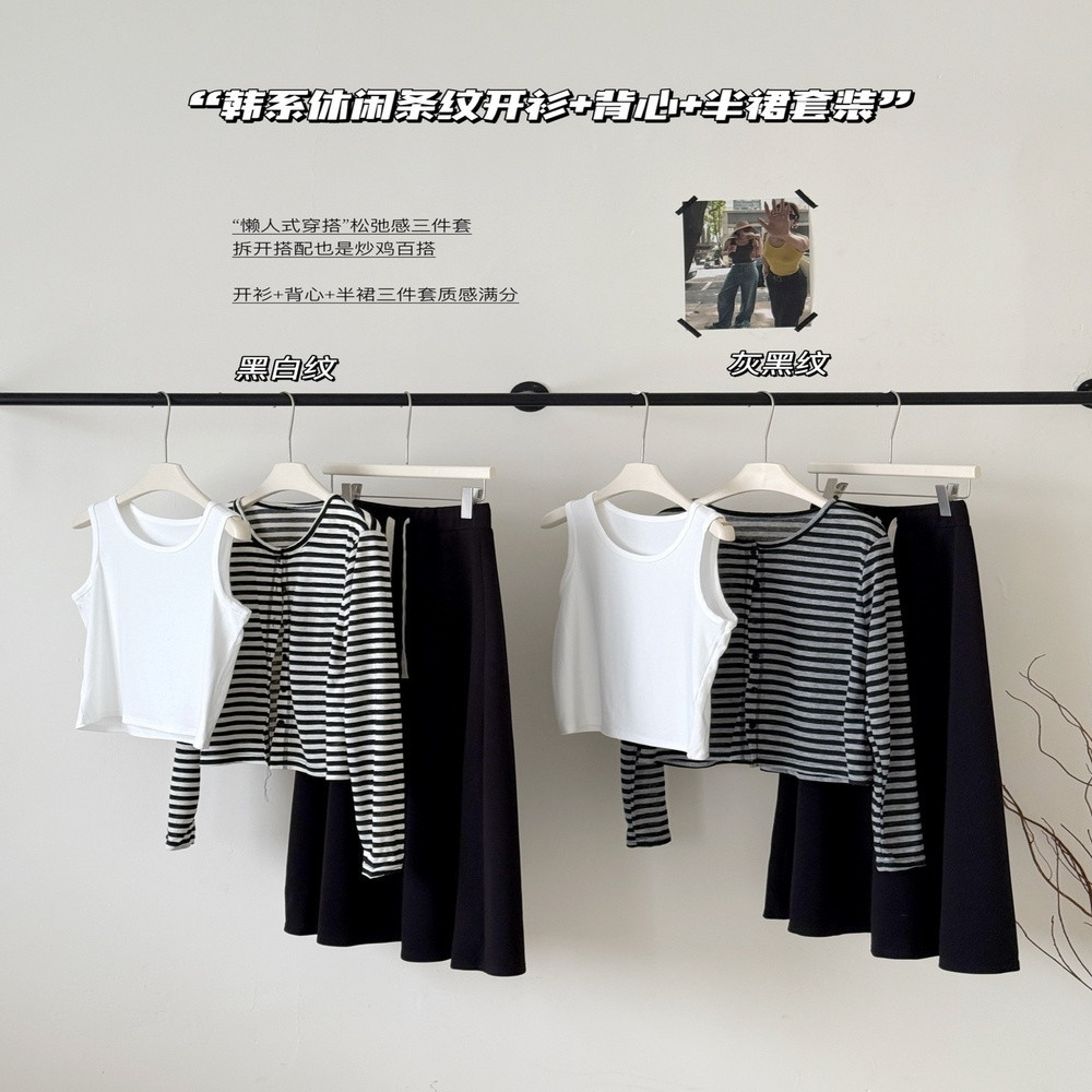 • 제품명: 스트라이프 가디건 나시 밴딩 스커트 3종 세트