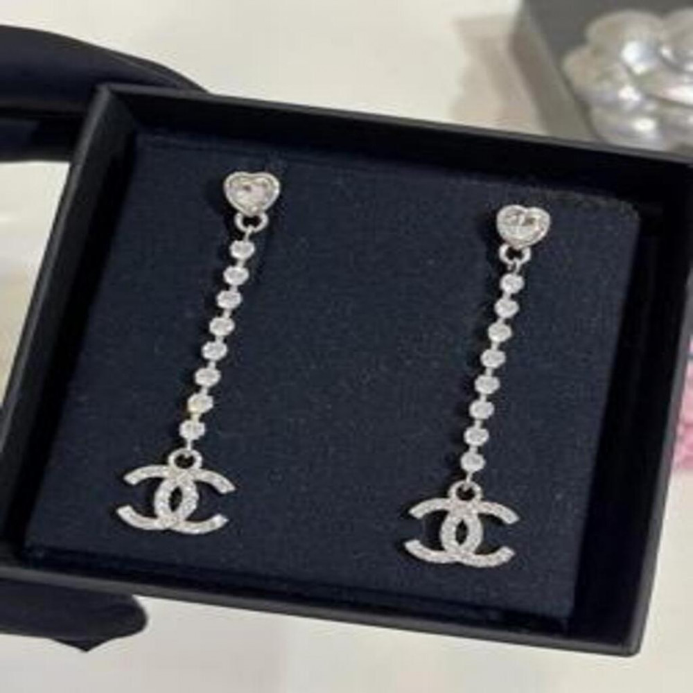 • 제품명: 25S 실버 풀 다이아 더블C 하트 크리스탈 드롭 이어링