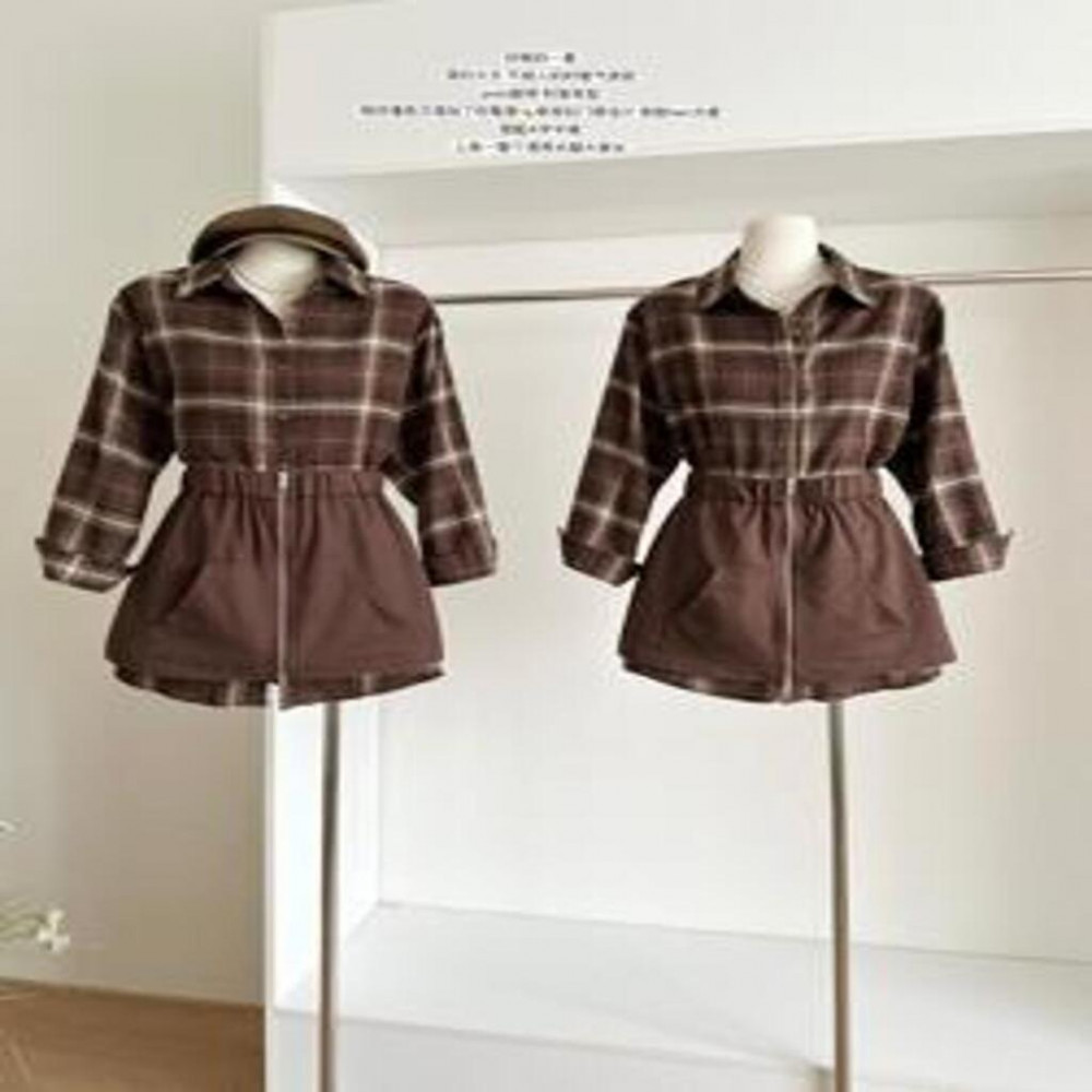 • 체크 패턴 셔츠와 A라인 미니 스커트 구성의 투피스