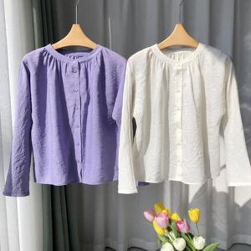 • 담백한 라운드넥 + 넥라인 주름 디테일로 지적인 무드