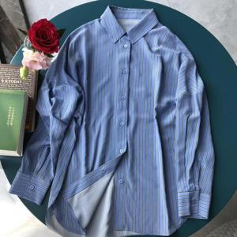 • 제품명: 설레임 블루 스트라이프 루즈핏 실크 셔츠