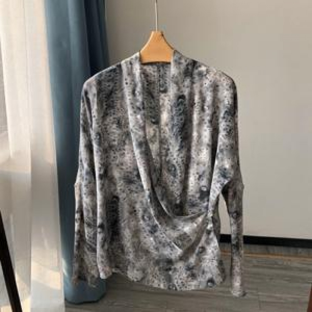 - 깊은 V넥과 드레이프 카라로 목선을 돋보이게 하며 여성스러움 강조